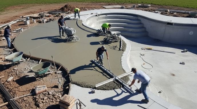 A professional concrete pool deck installation follows a precise, engineered process where every stage affects performance and longevity: